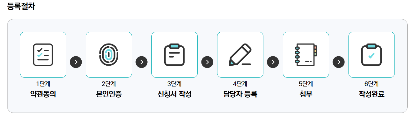 회원가입 및 로그인 -> 본인인증 -> 신청서 작성 및 제출