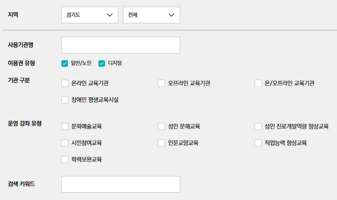 2. 경기도 평생교육 유형별 신청대상