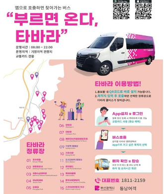 부르면 달려오는 타바라 버스 운행 노선 및 이용방법~ 이제는 차 없이 부산여행하세요!