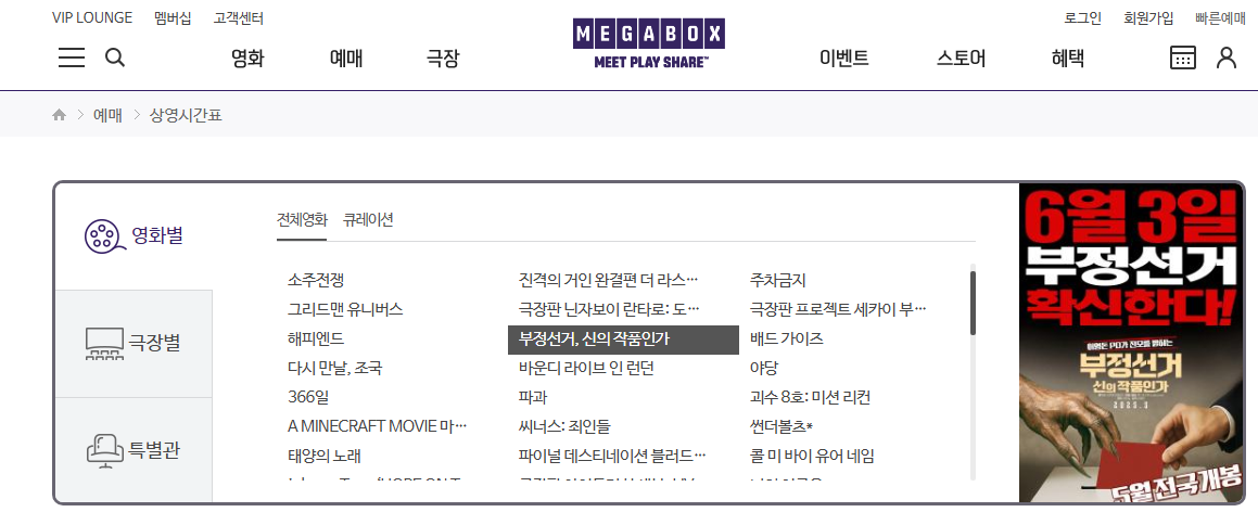 🎟️ 🎬    메가박스 영화  예매 바로가기