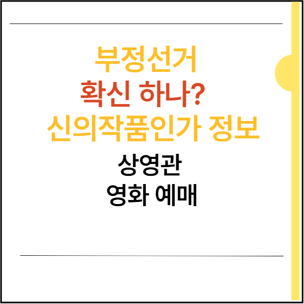 6월 3일 대통령 선거를 앞두고 있는 만큼 논란도 많고 이슈인 영화'부정선거 신의 작품인가'입니다. 전국에서 영화 상영하는 곳이 많지는 않아요~ 관심 있으신 분은 영화관 검색해서 내가 사는 곳에서 상영하는지 확인해 보시고 관람하시기 바라요. 이 작품은 음모론으로 말도 많고 논쟁의 여지가 많지만, 우리가 투표하고 있는 선거는 얼마만큼 투명하고, 우리는 선거에 대해 믿고 있을까?라는 질문을 던져보기에 좋은 소재인 것 같습니다. 영화를 보고 맞다 틀리다는 개인의 몫으로 각자 생각해 보고, 6월 3일에 열리는 선거 꼭! 자신의 주권을 행사하시길 바라요.
