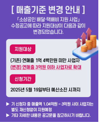 * 2023년 또는 2024년 기준 연 매출이 1억 4,000만 원 미만 -> 연매출 3억 원 이하로 지원범위 확대