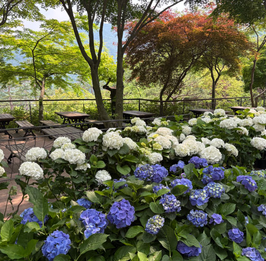 7만송이 이상의 수국이 테마별로 나누어져 있어, 꽃 길을 걷는 기분